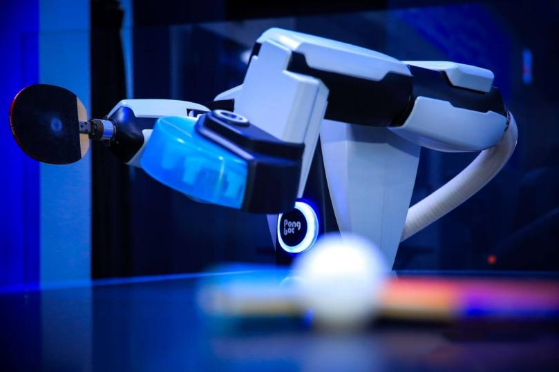 搭载了高通机器人RB5平台的庞伯特智能鹰眼系统,可利用先进的人工智能技术,实时捕捉高速运动下的乒乓球位置,并能以超低的延时对回球轨迹信息进行实时运算分析。